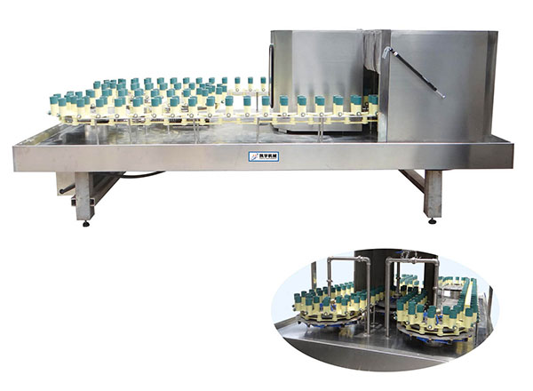 SYGZ-24-16-1型沖瓶灌裝打塞三聯(lián)機(jī) 三聯(lián)體機(jī)主要是為葡萄酒、果酒灌裝而設(shè)計(jì)的設(shè)備,本設(shè)備是將翻轉(zhuǎn)沖瓶機(jī)、負(fù)壓灌裝機(jī)、打塞機(jī)有 機(jī)組合為一體,設(shè)備結(jié)構(gòu)緊湊,節(jié)省安裝空間 ...